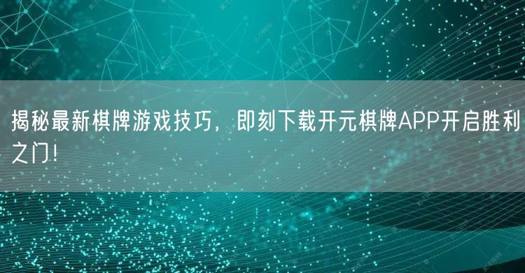 揭秘最新棋牌游戏技巧,即刻下载开元棋牌APP开启胜利之门!